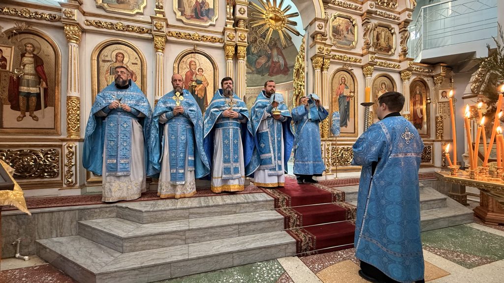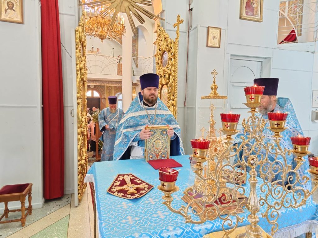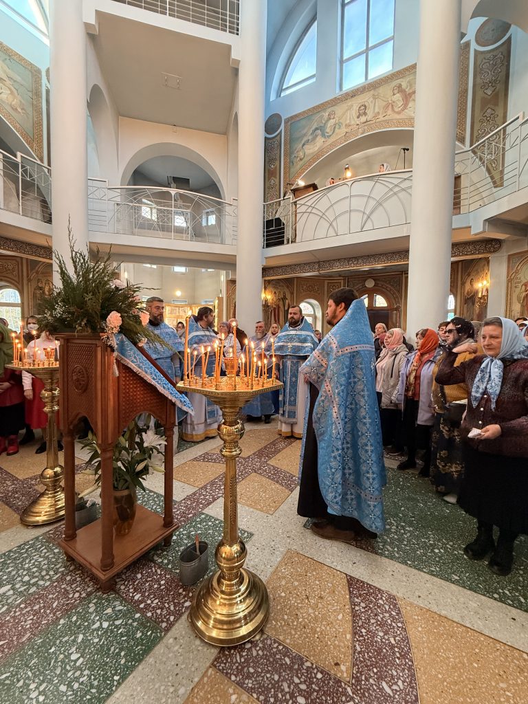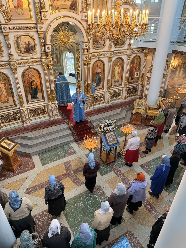 14 Октября, Седмица 19-я по Пятидесятнице, Покров Пресвятой Владычицы нашей Богородицы и Приснодевы Марии, в Храме Всех святых в земле Русской просиявших духовенством храма была совершена Божественная литургия.