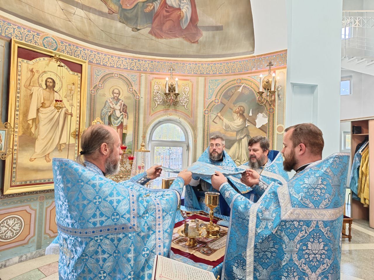 14 Октября, Седмица 19-я по Пятидесятнице, Покров Пресвятой Владычицы нашей Богородицы и Приснодевы Марии, в Храме Всех святых в земле Русской просиявших духовенством храма была совершена Божественная литургия.