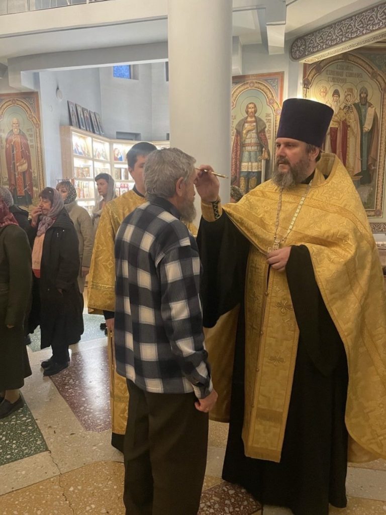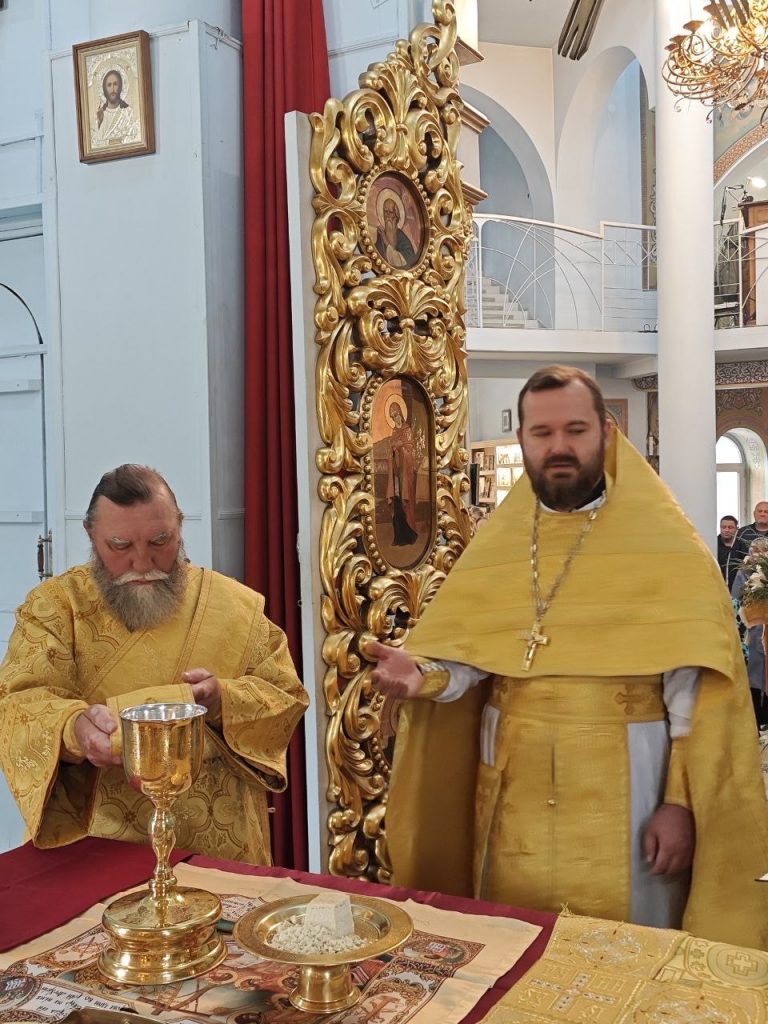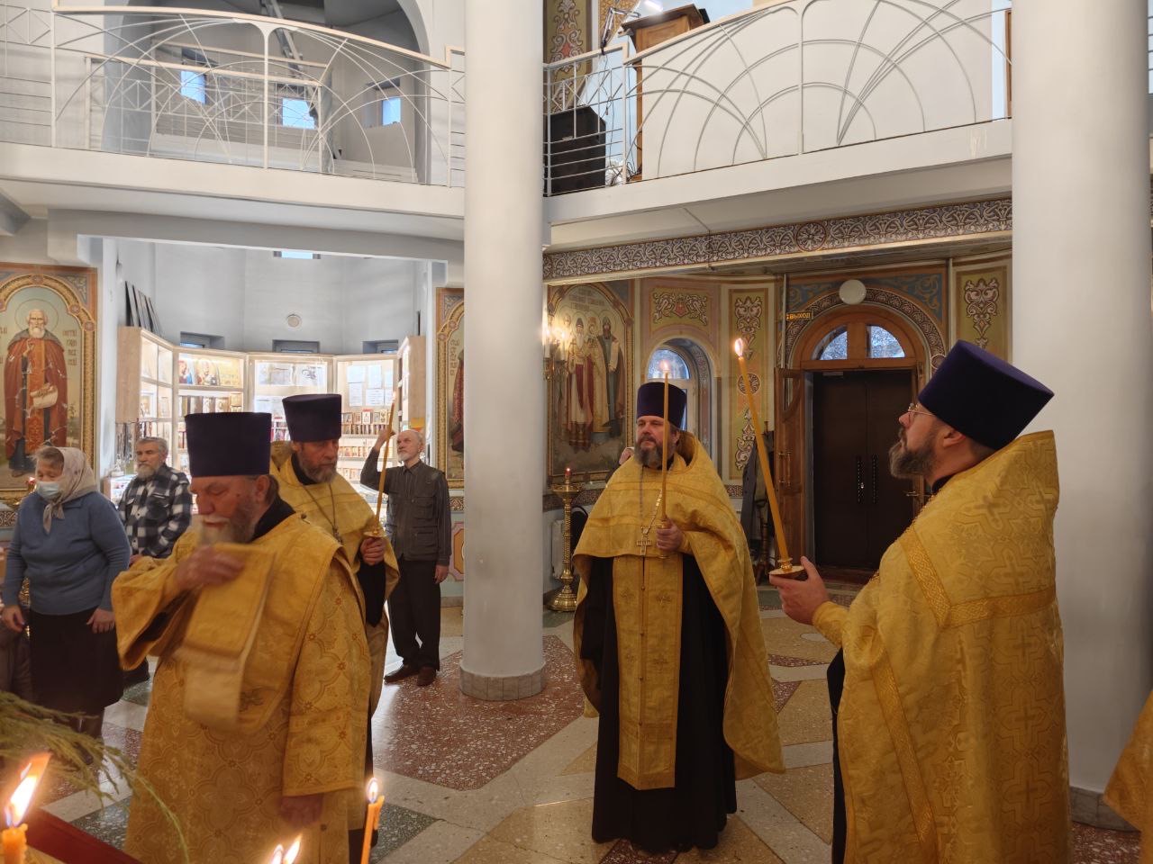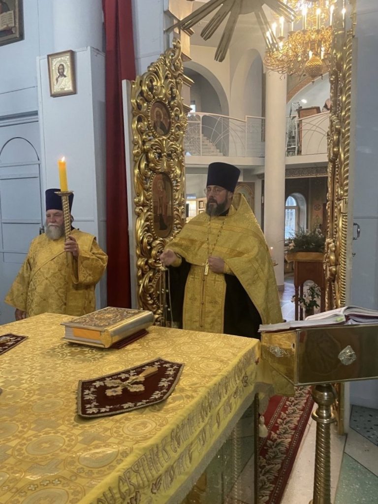По окончании раннего Богослужения иереем Дмитрием Зиминым был совершен водосвятный молебен, по окончании поздней Божественной Литургии протоиерей Геннадий Токарь совершил панихиду.
