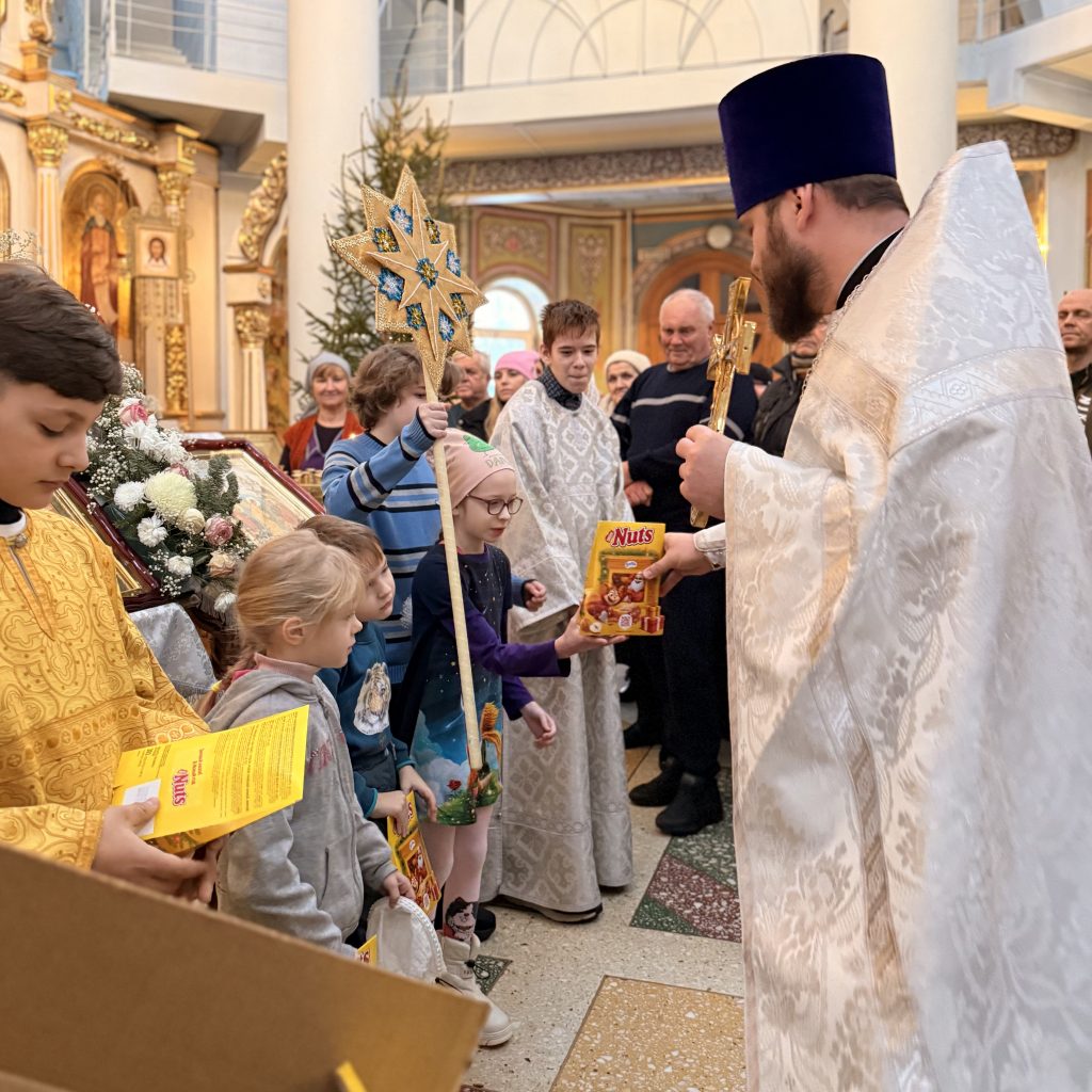 Дети воскресной школы по окончании Божественной литургии показали пришедшим Рождественское выступление, в котором поведали о Рождестве Христовом и пропели праздничные песнопения, после выступления всем детям были вручены сладкие подарки.