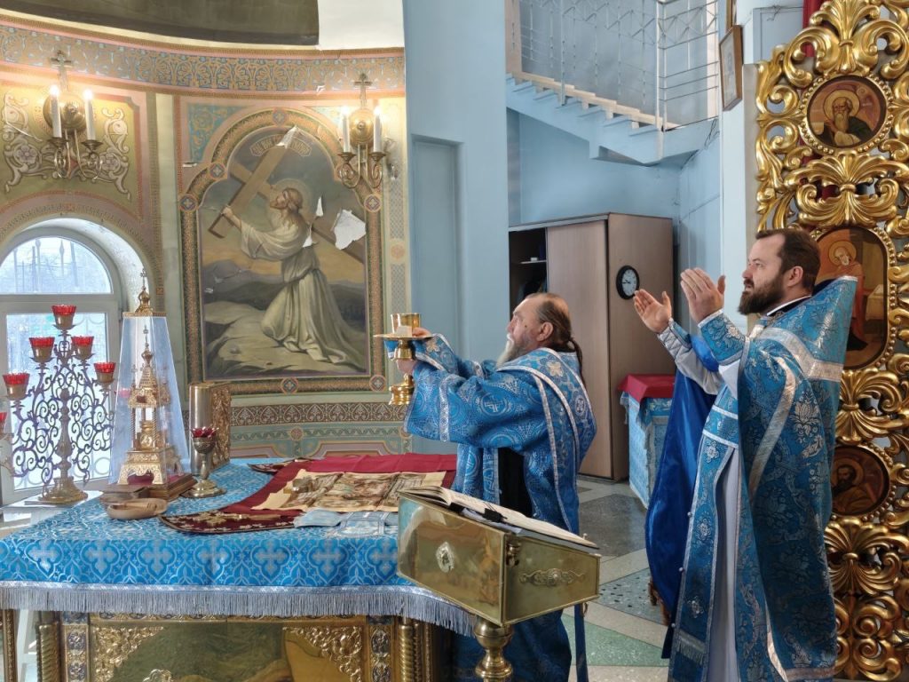 Раннюю Божественную литургию возглавил иерей Дмитрий Зимин. По окончании Литургии иереем Константином Бурундаевым был совершен водосвятный молебен.