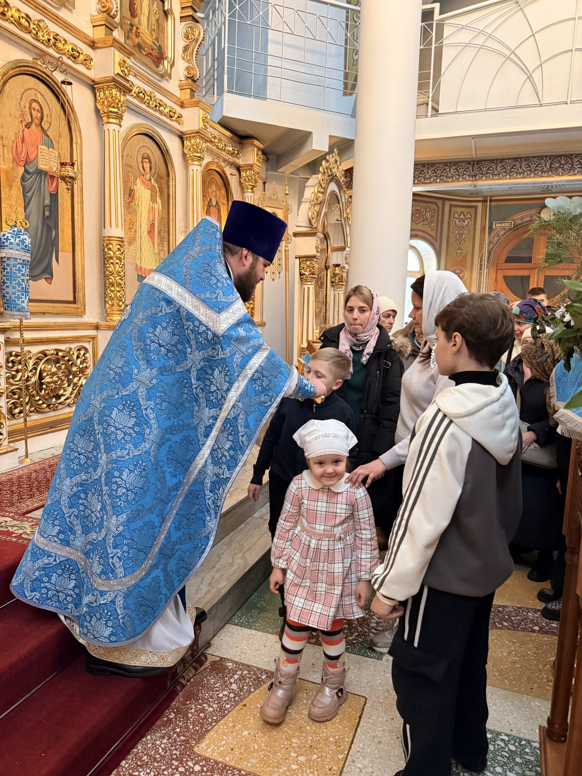 По заамвонной молитве было совершено Славление Господу Иисусу Христу и Его Пречистой Матери у праздничной иконы.