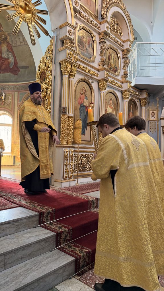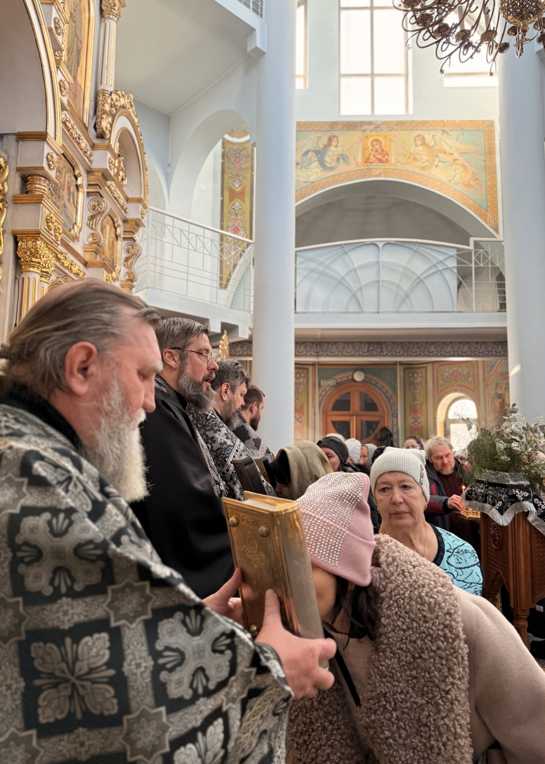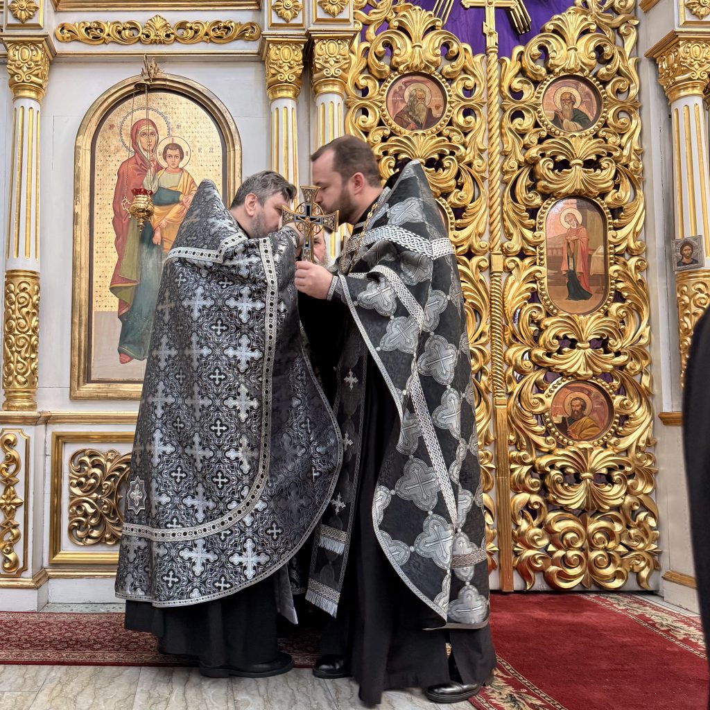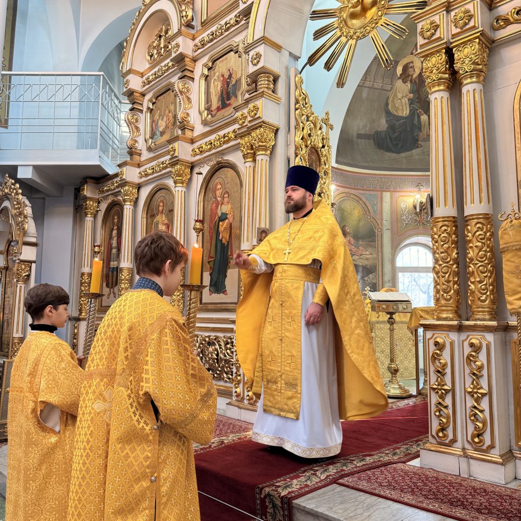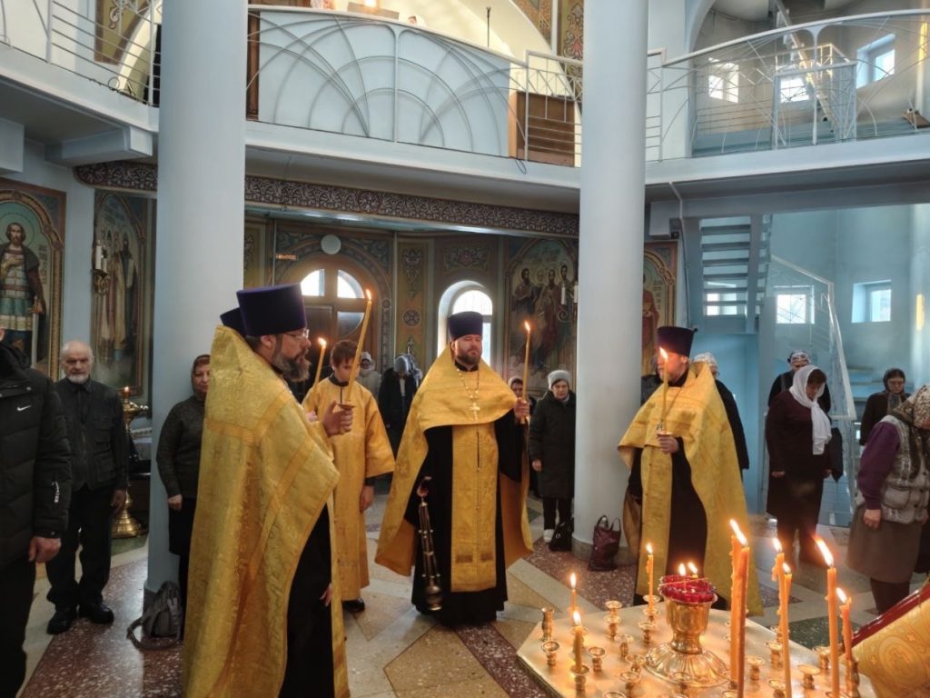 22 февраля, в Неделю сыропустную, воспоминание Адамова изгнания, Прощеное воскресенье, в храме Всех святых в земле Русской просиявших благочинный Юго-Западного округа, настоятель храма иерей Павел Тараканов совершил Божественную литургию и вечерню с чином прощения в сослужении клириков храма иерея Константина Бурундаева и протодиакона Евгения Мартынова.