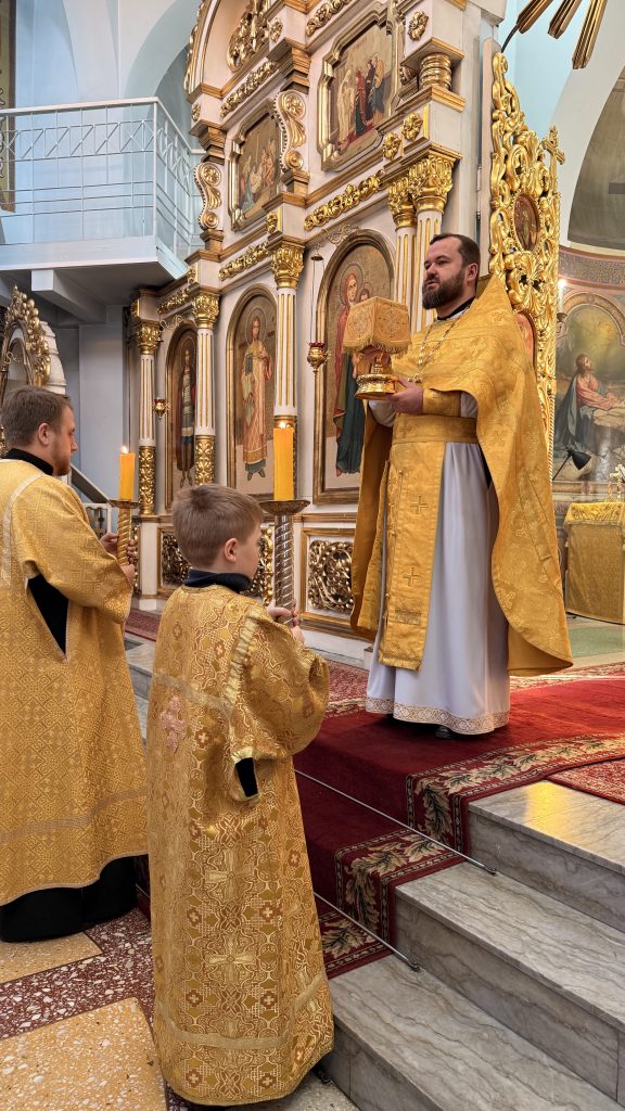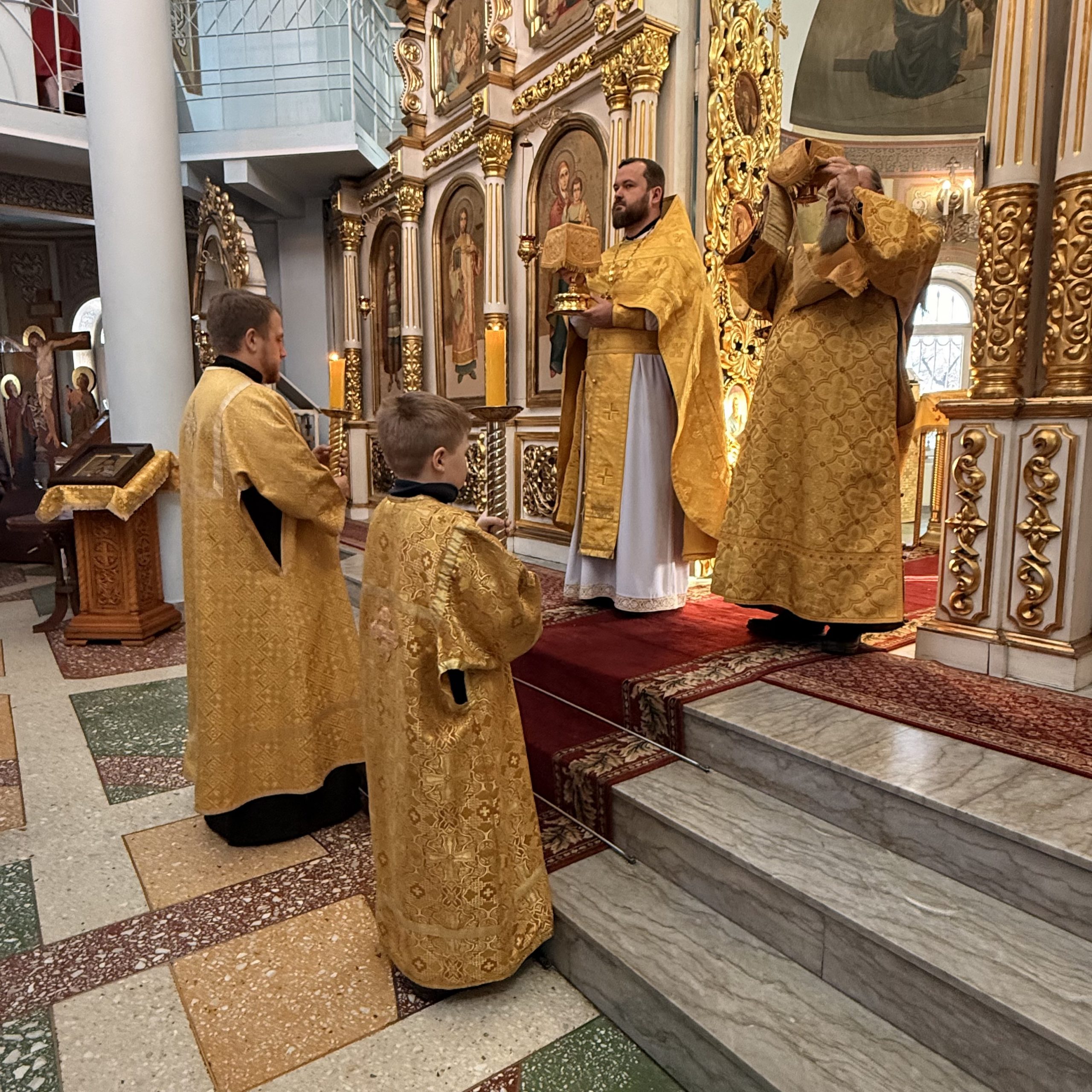 За ранней Божественной литургией молились протоиерей Геннадий Токарь и иерей Дмитрий Зимин. По окончании Литургии был совершен водосвятный молебен.